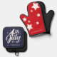 Patriotische Rot Weiß und Blau Unabhängigkeit Tag 4. Juli Thema mit Familienname Ofen Mitt und Potter Inhaber Set. Ein tolles Geschenk oder eine Ergänzung für diesen Unabhängigkeitstag 4. Juli kochen.