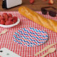 Party, Speisen, Grill oder besondere Anlässe mit Tellern aus Papier nach Maß. Red White Blue Patriotic Zickzack Zig Zag Streifen. Erleben Sie jede besondere Veranstaltung mit Familie und Freunden.