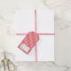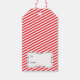 Geschenktags mit abwechselnden roten und weißen diagonalen Streifen. Personalisiertes Feld mit bis und ab.