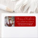 Elegante und klassische Rückgabetiketten für fröhliche Weihnachten (Weihnachten) Weihnachten Grußkarten / Umschläge. Fügen Sie Foto oder anderes Bild hinzu. Kinderuhr mit rotem Glitzerarmband. Moderne rote Buchstaben für Familienname und Adresse. Buchstabenfarbe und Schriftart können geändert werden.