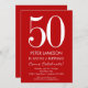 Une invitation simple et moderne à l'anniversaire rouge et blanc pour jalon ou tout anniversaire d'âge. Cet invitation est pour tout âge, y compris les étapes : 18e 21e 30e 35e 40e 55e 60e 70e 75e 80e 85e 90e