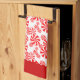 Ein rotes und weißes Pfefferminzkuchen, ein Küchentuch mit tiefen roten Rändern.