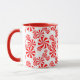Eine Tasse mit einem süßen, rot-weiß gestreiften Pfefferminzbonmuster.