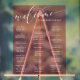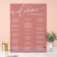 Carte de sièges en acrylique imprimée en rouge transparent avec bienvenue dans un script tourbillonnant et le tableau de sièges dans une police élégante. Fonctionne pour tout événement. Signe de tableau de siège imprimé sur acrylique avec un arrière - plan rouge et un texte blanc. L'accueil est imprimé en haut et vous pouvez ajouter trois colonnes d'invités, triées par ordre alphabétique afin qu'ils puissent facilement trouver à quelle table ils sont affectés. Signe en acrylique rouge pour tout événement avec des polices blanches.
