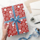 Abstraktes modernes Winterweiß und Rot Stern und Schneeflocken Muster elegantes Design. Dekorieren Sie Ihre Weihnachtsgeschenke mit diesem festlichen rot-weißen Packpapier.