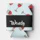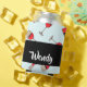 Add your name on this red wine bottles and glasses on blue background pattern design.