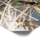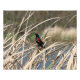 Ein roter Buchvogel in einem Schilfbett. Die Henne liegt auf dem Nest im Schilfbett direkt unter dem Männchen.