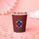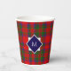 Red Wool Plaid Tartan with Central Monogram Badge Pappbecher
