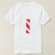 Ein schlichter weißer T - Shirt mit feinem, rotem Zickzack-Design, ideal für einen lässigen, herausragenden Look oder als einmaliges Geschenk für jeden Anlass.