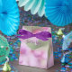 Zehnt-Stil Leckerei Box mit lila Band, "Just For You" Text und Bild aus dem Bild, das ich von Frühjahrsblüten aufgenommen.