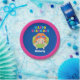 Phantastischen Kinder Schwimmbad Party Happy Geburtstag Papierteller für ein Rotkopfkind im Schwimmteam während der Sommermonate. Ein heller, lustiger Pop mit Farben und ein hübsches Schwimmmädchen in einem Schlauch. Für eine besondere Kinderfeier-Dekoration.