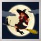HALLOWEEN, DIE MIT KATZE UND VOLLEM MUND AUF BROOMSTICK FLIEGEN.