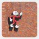Aufkleber mit Foto des Zeichens Reddy Kilowatt auf einer Ziegelwand.