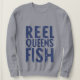 A stylish women’s sweatshirt with “Reel Queens Fish” text. Great for fishing fans and outdoor queens.