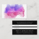 Encouragez vos clients et vos clients à partager l'amour avec ces cartes de visite chics de référence en aquarelle. Avant dispose d'une seule ligne de texte personnalisé sur une toile d'aquarelle en arrière-plan dans les tons vifs de rose fuchsia et violet. Ajoutez vos informations de contact et vos conditions de référence au verso à l'aide des champs modèle fournis. Inclut l'espace pour les noms du référent et du nouveau client.