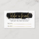 Chic salon référencez une carte ami avec une police de script moderne, des effets or et l'arrière - plan d'aquarelle noire. Cette luxueuse carte d'aiguillage de beauté comprend de l'espace pour votre remise d'aiguillage offerte et le nom du client. Créez des cartes de réduction moderne, sourcils ou ongles avec cet élégant bar de beauté partager le modèle d'amour.