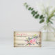 Référez vos clients à votre marque de pays personnelle avec ces cartes de visite de référence à l'ami à la floraison rustique et à la grange en bois avec une paire de ciseaux de salon de coiffure argent enveloppé dans un bouquet de roses rose féminin et pêche. Personnalisez en ajoutant le nom du coiffeur professionnel ou du coiffeur. Image imprimée plate, PAS du bois.