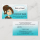 Rendez-vous ou parlez-en à un carte de visite avec une dame de bande dessinée qui recommande votre entreprise. Idéal pour toute entreprise avec une clientèle majoritairement féminine.