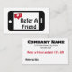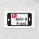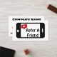 Récompensez vos clients avec une carte d'ami de référence. Cette carte spécifique a une icône de téléphone avec une émotion de bulle d'amour dessus. En revanche, vous pouvez personnaliser vos informations et votre promotion pour qu'elles correspondent à vos besoins.