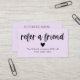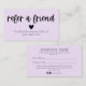 Cartes de référence modernes violettes et noires qui peuvent être personnalisées avec vos détails d'affaires sur le dos.