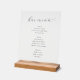 This elegant acrylic sign features a chic bar menu design, perfect for adding sophistication to any establishment. The minimalist layout showcases a refined color palette of soft grays and whites, with the text elegantly arranged in an inviting cursive font. It lists various beverage options including beer, wine, and spirits, making it both functional and stylish. Crafted on a wooden base, this sign exudes a modern yet timeless vibe, ideal for enhancing the ambiance of bars or restaurants.