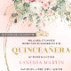 Refined Boho Blush Roses Greenery Gold Quinceañera Einladung