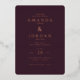 This elegant wedding invitation features a sophisticated maroon background with gold typography, creating an air of timeless elegance and refinement. The clean, modern layout highlights the text in a balanced composition, perfect for conveying important details with grace. Ideal for couples seeking a classic yet contemporary look, this design exudes warmth and formality, making it suitable for a memorable celebration. Customize the text to personalize your special day while maintaining its polished aesthetic.