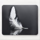Single weiße Federreflektion auf Farbverlauf schwarzen Hintergrund.