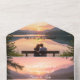 Reflets de coucher de soleil sur le lac - L'invitation tout-en-un capture la beauté et la sérénité d'un moment romantique au bord du lac. Un jeune couple est assis ensemble, contemplant un coucher de soleil doré reflété sur des eaux calmes, symbolisant l'amour, l'unité et les nouveaux départs. La lueur chaude et le paysage tranquille créent un arrière-plan intemporel pour votre jour spécial, mêlant l'élégance au charme naturel. Parfaite pour les mariages en plein air, rustiques ou de destination, cette invitation tout-en-un apporte une émotion sincère et une sophistication sans effort à votre papeterie de mariage.