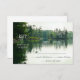 Cette carte RSVP mariage rustique de Mountain Lake présente une belle scène boisée rustique avec un lac ou une rivière calme au premier plan reflétant des arbres à feuillage persistant éloignés et des structures rocheuses et un ciel couvert sur de légères ondulations de surface | créé à partir d'une de mes propres photos de kayak et rehaussé d'un effet subtil d'aquarelle numérique pour une sensation de peinture - partie de la collection de mariages rustiques de Mountain Lake par katz_d_zynes >> https://www.zazzle.com/collections/119499271518309609