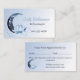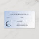 Eine stilvolle Reflexologie-Terminkarte, die mit einer Aquarellblauen Lotus-Blume, einem halbmondfarbenen Mond und blauen Saitenleuchten geschmückt ist, auf einem blass blauen Farbverlauf mit Platz zum Schreiben des nächsten Termins und der nächsten Zeit Ihres Kunden, unter dem Ihre individuelle Stornierungsrichtlinie steht. Ideal für kleine Unternehmen wie Reiki, Aromatherapie, Physiotherapie, Osteopath, Chiropraktor, Massagetherapeut und vieles mehr. Der gesamte Text kann auf Ihre geschäftlichen Bedürfnisse zugeschnitten und personalisiert werden. Die Vorlage für die Erinnerung befindet sich auf der Kartenrückseite, zusammen mit den Angaben zum Unternehmen und den Kontaktinformationen.