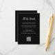 Diese einfachen und eleganten, schwarzen Gästebuchskarten sind mit modernster Schriftzeichen und klassischem weißem Text ausgestattet und bieten eine stilvolle und zeitgemäße Wahl für Ihre gotische oder traditionelle Hochzeit. Sie können diese Karten für die Anfahrt, Empfang- oder Transportinformationen, Hotel- oder Unterkunftsinformationen und alle anderen Hochzeitsdetails verwenden, die Sie für Ihre Gäste benötigen. Enthält auch einen scannbaren QR-Code.