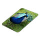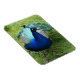 A vibrant peacock, its iridescent plumage partially displayed, stands proudly on a lush green lawn, creating a serene and captivating scene. The majestic peacock's body is predominantly a deep, rich blue, contrasting sharply with the iridescent greens, blues, and browns of its partially displayed tail feathers. These feathers are large and expansive, fanning out behind the peacock's body, but not fully spread in a full "train". The individual "eyes" on the tail feathers are visible, adding to the overall splendour of the bird. Its head is adorned with a small crest of feathers.