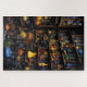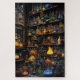 Regale von Trankflaschen Puzzle. © Jigsaw Wonderland bei Zazzle. Dieses Puzzle zeigt Regale voller farbenfroher Trankflaschen. Es gehört in eine Zauberer-Apotheke.