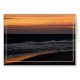 Deux enfants se tiennent au bord du surf pour regarder le soleil se lever au-dessus de l'océan.