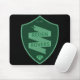 Eine schwarze Mausunterlage mit dem Regen-Vagabundlogo.