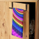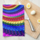 Geschirrtuch, das ein flippiges Hippieartregenbogen-Strudelmuster kennzeichnet. Diese Fraktalkunstspirale/-strudel in Rotem, in Orange, in Gelbem, in Grünem, in Blauem, in Lila und in rosa holen ein Lächeln zu, das jeder, hypnotizing Gesicht mit ihm Muster und helle Farben.