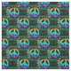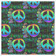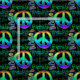 Muster der Regenbogenfriedenssymbole mit dem Wort "Frieden" gegen einen dunklen Hintergrund.