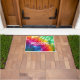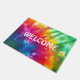 Tun Sie Liebe-gefärbte Krawatte? Feiern Sie den 60er und 70er in der Art mit dieser Regenbogen-Krawattenfußmatte! Foto eines tatsächlichen Krawattenstückes mit der Sonne, die durch scheint, um die Farben vibrierend zu machen.