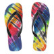 du Krawatte? Feiern Sie den 60er und den 70er mit diesen Regenbogen-Krawatte-Flip-Flops! Foto eines echten Farbstoffstücks mit der Krawatte, durch das die Sonne scheint, um die Farben lebendig zu machen.