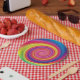 Rundes buntes, wenn Sie einen Toothpick, Bleistift oder anderen Stock auf seinem Rand einfügen, erhalten Sie ein Neuheitseinzelteil.