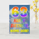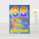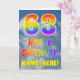 Dieses lustige und farbenfrohe Grußkartendesign aus dem 63. Jubiläum präsentiert einen blauen Himmel mit Wolken, zusammen mit einer großen Zahl "63" und der Meldung "HAPPY BIRTHDAY" mit einem inspirierten Farbverlauf in Regenbogenfarben. Auf der Vorderseite befindet sich auch der bearbeitbare Name des Kartenempfängers. Im Inneren befindet sich eine personalisierte Geburtstagsgrüßbotschaft, oder man könnte sie löschen und leer verlassen werden, wenn eine Nachricht von Hand geschrieben werden soll. Eine personalisierte Geburtstagskarte wie diese könnte eine lustige Art sein, jemandes dreiundsechzigsten Geburtstag anzuerkennen. [~Z0000371]