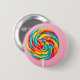 Ein niedlicher Schuss eines Regenbogenlutschers auf einem rosa Hintergrund.
