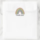 Stickers mit Dankeschön Nachricht. Niedlicher Regenbogen im Cartoon mit Papiertextur und abgeschrägtem Effekt. Alles, was gesehen wird, ist bedruckt, bei der Herstellung dieser Produkte wird keine eigentliche Prägung verwendet. Dekor und Geschenkidee für Erwachsene und Kinder.