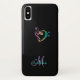 Personalisierter Regenbogen-Musikclef-Herz iPhone X Fall. Ein buntes dreifaches Bassschlüsselherzsymbol auf einem Schwarzen oder Ihrer Wahl FarbeiPhone X des großen Geschenks Falles A für Ihren Lieblingsmusiker oder Musikfreund. Füllen Sie Ihren Namen an der Aufforderung aus, um zu personifizieren und Sie irgendwie besonders anzufertigen mögen Sie.