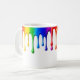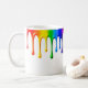 Dieses Bild zeigt ein buntes und fröhliches Design mit einer grafischen Zusammensetzung glänzender Regenbogen-Linien. Die Abbildung zeigt ein künstlerisches Schaffen, in dem eine mehrfarbige Flüssigkeit in abgerundete, lange Tropfen fließt, die sanfte Wellen auf einem glänzenden weißen Hintergrund bilden. Die Grafik zeigt die Lichtreflexionen und Schatteneffekte auf, um einen realistischen Reliefeffekt zu erzeugen. Jeder Tropfen fließt fließend in einen harmonischen Defekt von rot bis violett. Diese visuelle Zusammensetzung spielt mit Texten und Licht, um eine dynamische, glänzende und moderne Darstellung zu bieten.