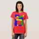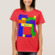 Ist hier ein bunter T - Shirt mit einem Patchworksteppdeckenentwurf in den Regenbogenfarben und in einem strukturierten Blick. Leicht personifizieren Sie oder entfernen Sie den Text.