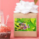 Regenbogenfarbene Libelle auf einer lila rosa Blum Rechteckiger Aufkleber