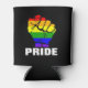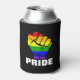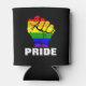Mit diesem Regenbogen-Faustdesign zeigen Sie der LGBTQ Community Ihre Solidarität. Vorgestellt ist eine Faust, mit Regenbogenfarben. Der fett formatierte Typ darunter lautet "PRIDE". Sie können den Hintergrund für jede Farbe anpassen.
