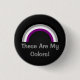 Rundschaltfläche mit asexuellen Regenbogenstreifen aus schwarz, grau, weiß und lila; Ass Stolz Flaggendesign auf schwarzem Hintergrund, "This Are My Colors" Vorlagentext, von Pinkbrickroad